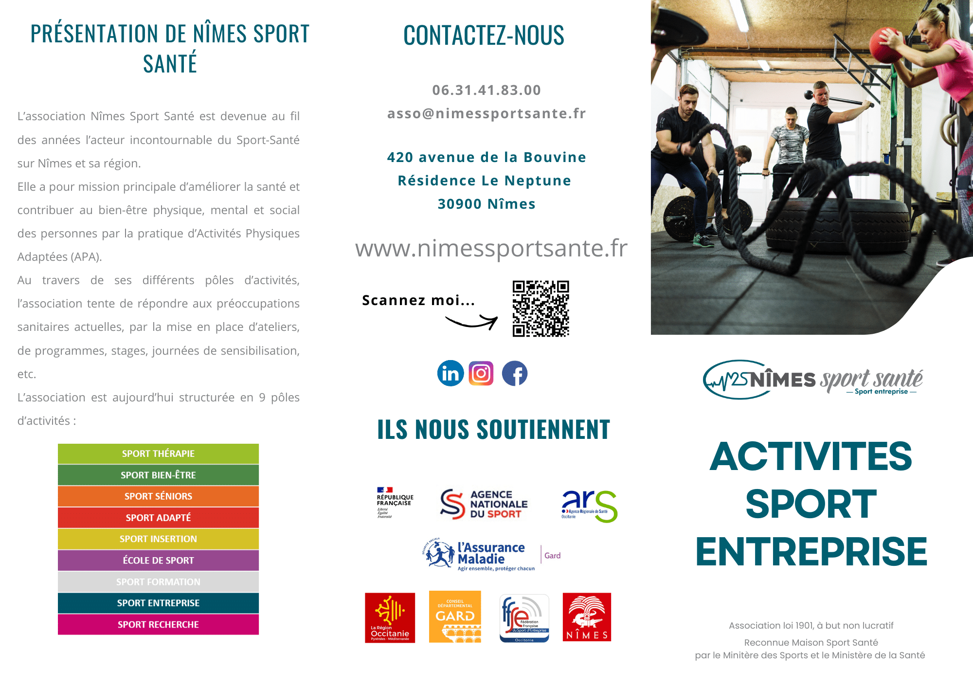 Le PÔLE SPORT ENTREPRISE de Nîmes Sport Santé propose une offre modulable et personnalisable, pensée pour répondre aux enjeux de santé, de qualité de vie au travail (QVT) et de performance collective.