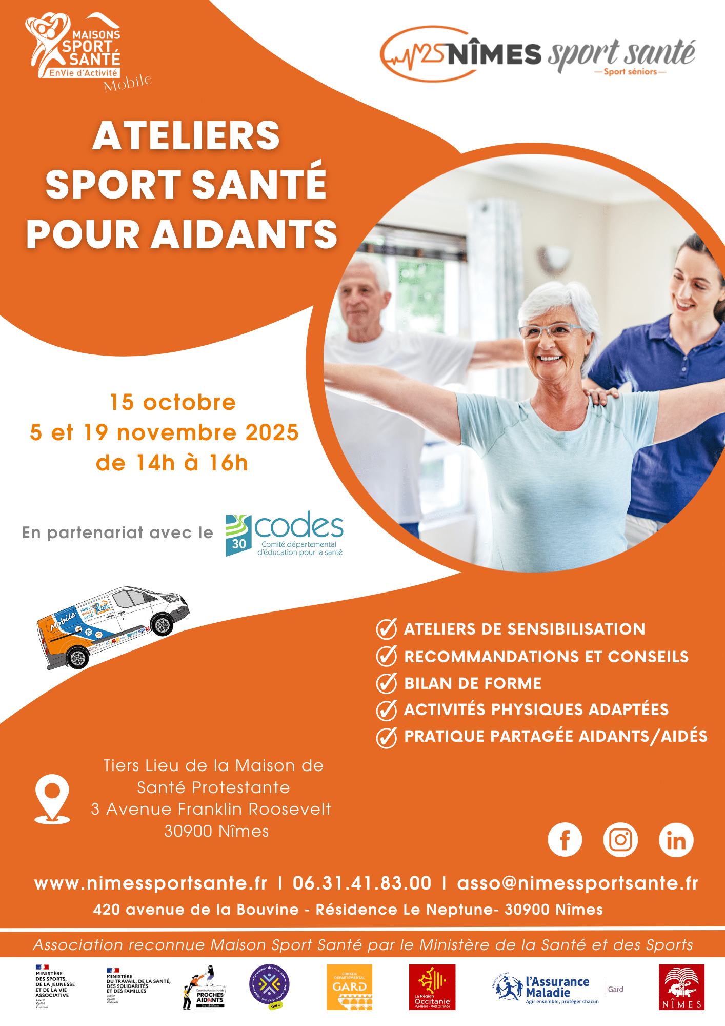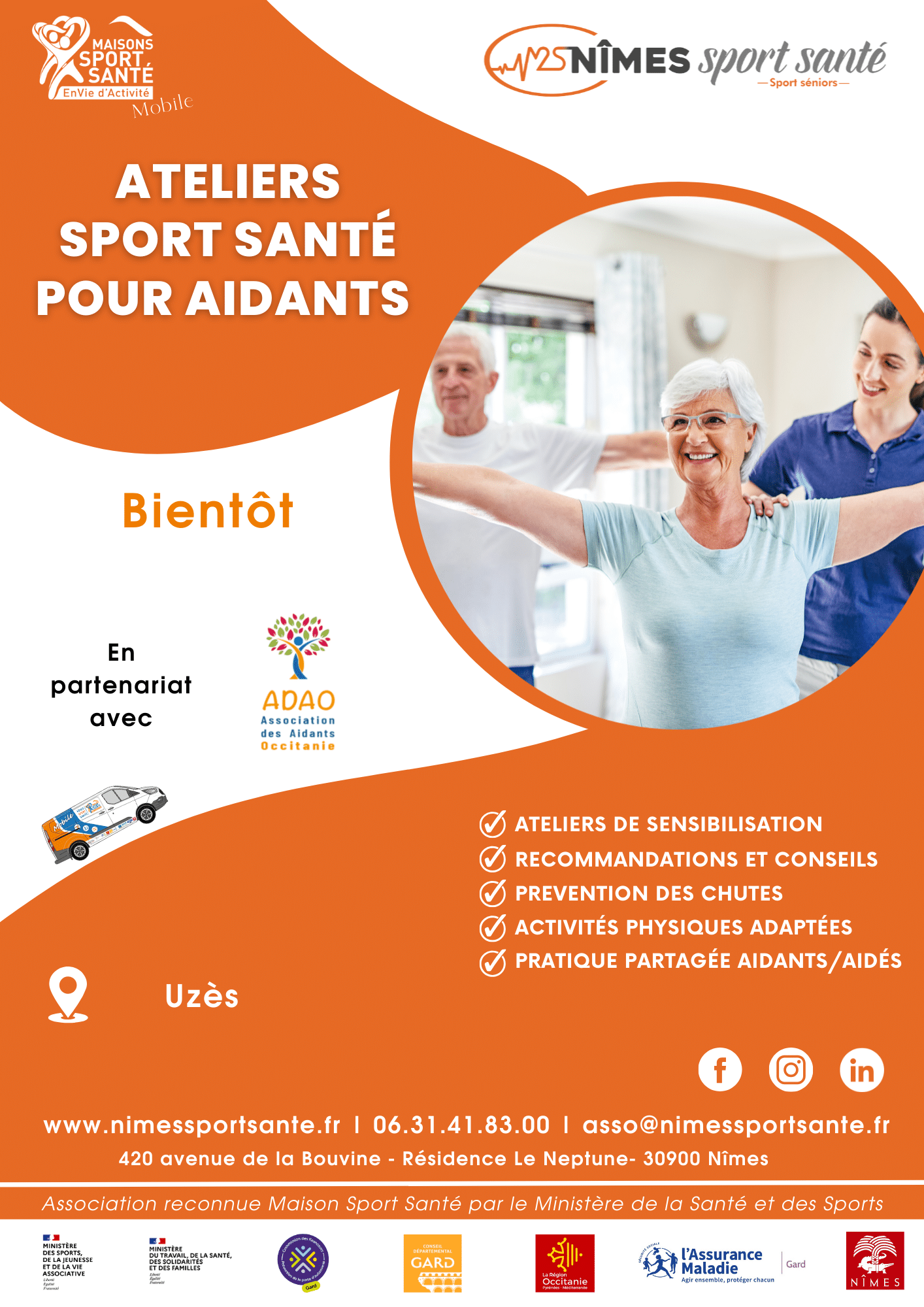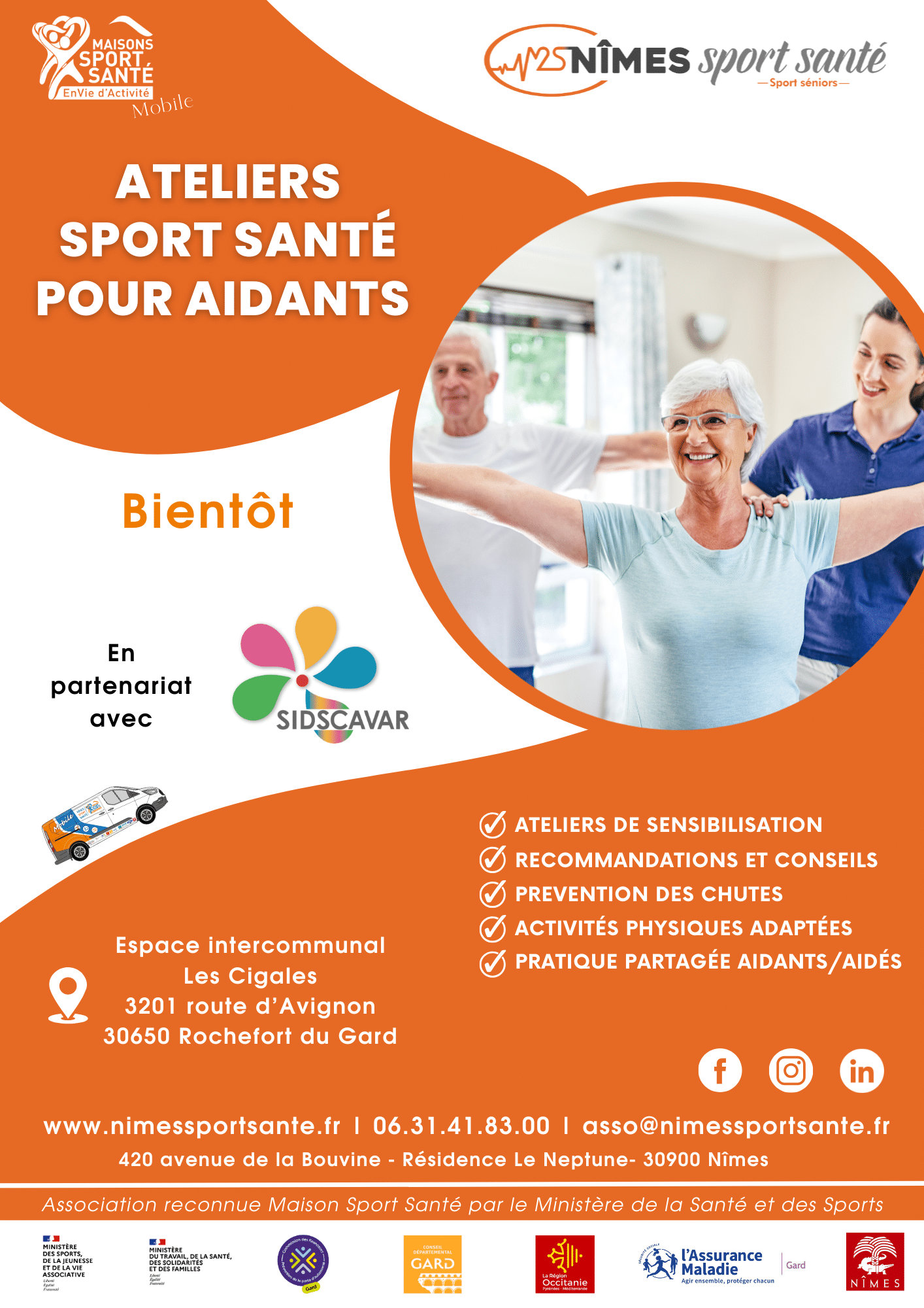 En partenariat avec les espaces ressources aidants de Nîmes, Uzès, Calvisson et Rochefort du Gard, N2S met en place avec la Maison Sport Santé mobile des ateliers de sensibilisation pour les aidants. Au programme conférence + bilans de forme + initiations. Ces ateliers sont financés par la Conférence des Financeurs pour la Prévention de la Perte d’autonomie du Gard.