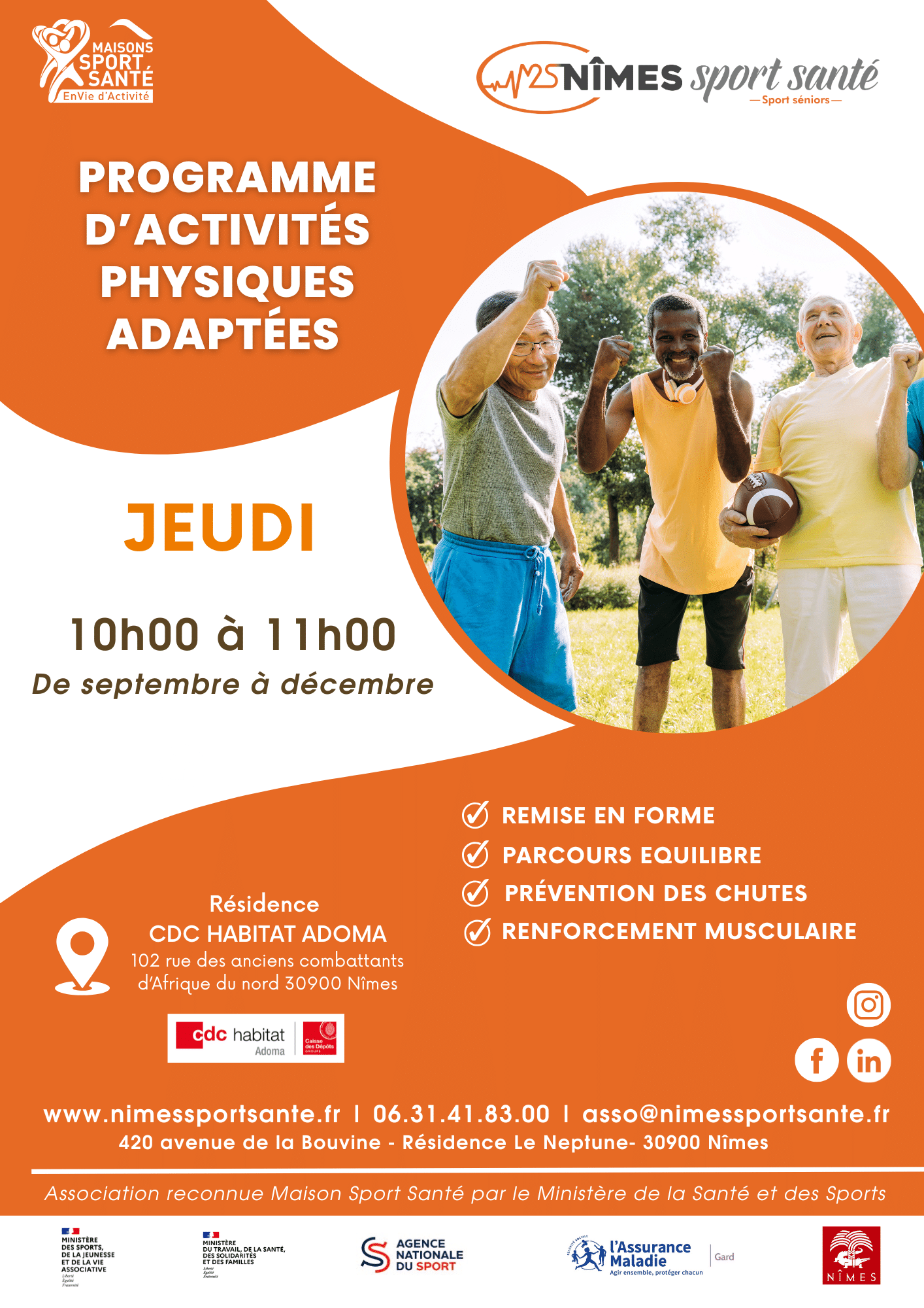 Ce dispositif est mené au sein des locaux de Nîmes Sport Santé – Maison Sport Santé à partir de janvier 2026. Les séances sont encadrées par un enseignant APA.