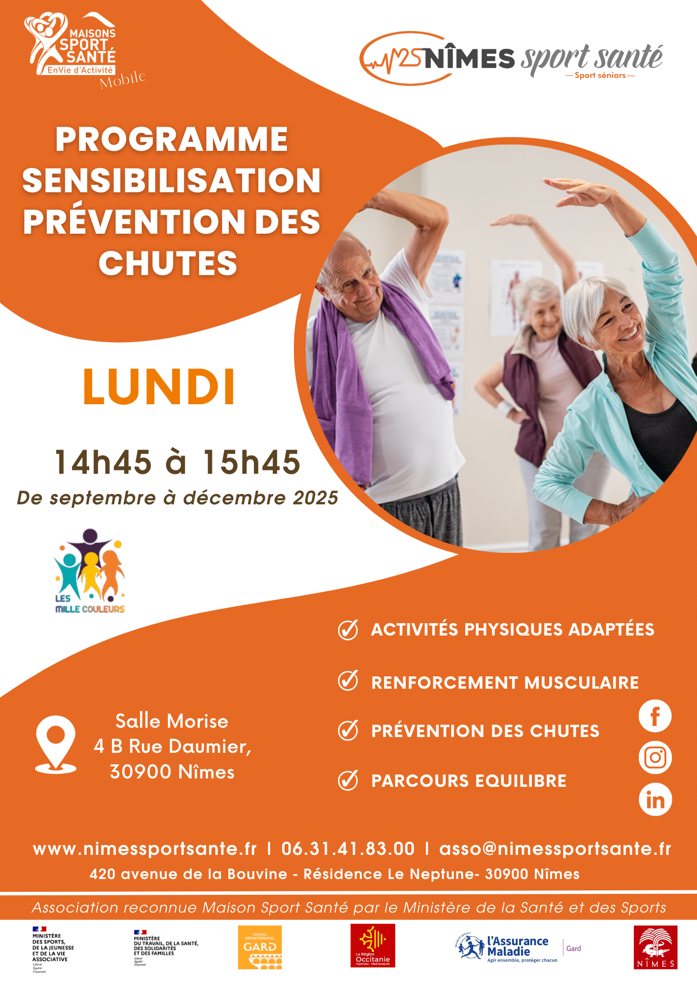 Grace au financement de Cap Prévention, de la ville de Nîmes et de la Commission des Financeurs de la Prévention de la Perte d’Autonomie des personnes âgées du Gard (CFPPA) 7 programmes sont mis en place sur la saison 2025/2026.