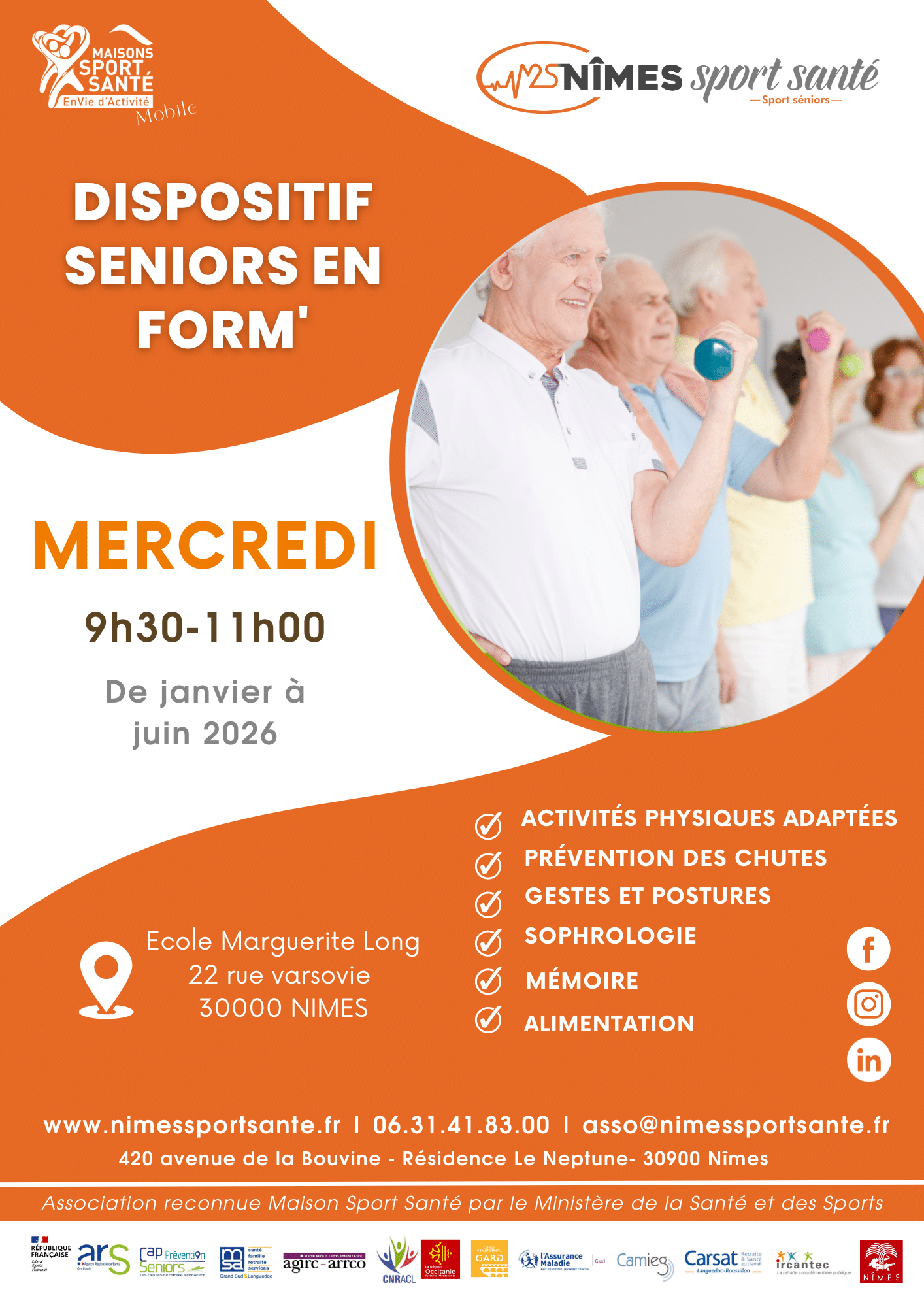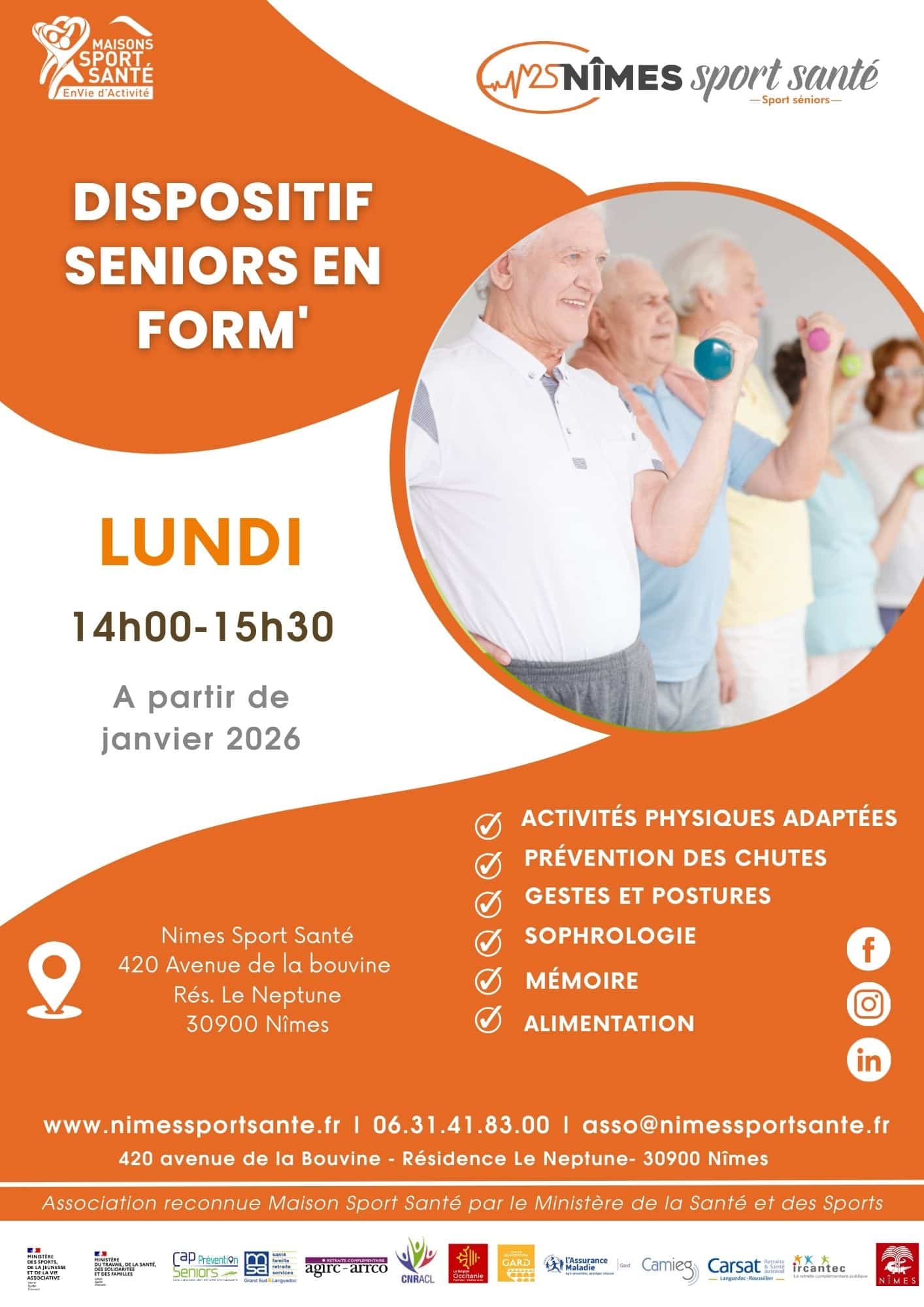 Ce dispositif est mené au sein des locaux de Nîmes Sport Santé – Maison Sport Santé à partir de janvier 2026. Les séances sont encadrées par une enseignante APA.